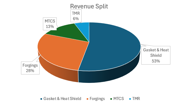 • The overall industry growth for Forgings, Gaskets & Heat shields is expected to be 9,8%, 7% & 7.4 percent respectively on a CAGR basis.