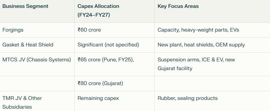 • Guided for total capex of 205cr for next 3-4 years mainly funded by internal accruals,