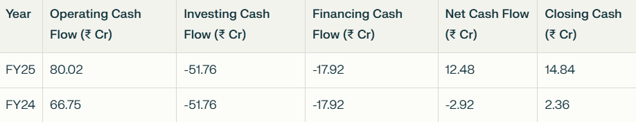 • Management has guided to keep Net debt level below 100cr by FY27