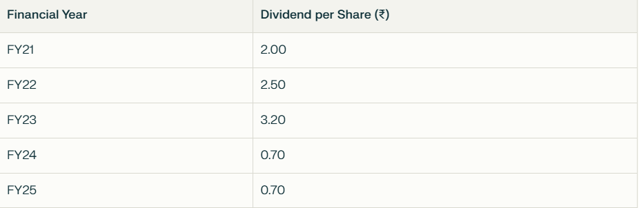 • As a result of slow growth in revenues & profits the dividend payouts are significantly lower in the recent two financial years.